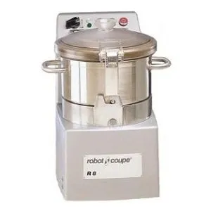 Настольный куттер измельчает, приготавливает тонкие фарши, эмульсии, взбитые сливки, размельчает орехи и замешивает тесто. Габариты 315х545х585 мм, трёхфазный. Мощность 2200 Вт. 2 скорости: 1500 и 3000 об/мин. Импульсное управление. Чаша из нерж. стали объёмом 8 л с 2 ручками. Поставляется со съёмным ножом низкой посадки из нерж. стали с 2мя гладкими лезвиями. Укомплектован электрокабелем без штепсельной вилки.