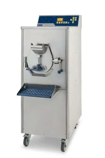 435x798x1257 мм, 220 В, 2,8 кВт, 140 кг. Фризер для твердого мороженого / джелато. Загрузка за цикл 1,15-4 кг. Производительность 22 кг/час (30 л/час). Горизонтальный цилиндр, сталь AISI 304. Стальные дверь и мешалка, саморегулирующиеся скребки. Инвертор, регулируемая скорость вращения мешалки. Электронный контроллер, 61 программа. Функция размораживания цилиндра. Корпус нержавеющая сталь. Воздушное охлаждение конденсатора.