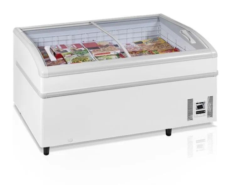 1520 x 920 x 790 мм, 220В, 0,356 кВт, От -24 до -18 C , брутто/нетто - 590 / 400 л, 98 кг, с встр. агр., R290, 4 регулируемые ножки, 2 гнутые раздвижные крышки из закаленного стекла
