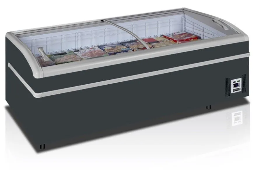 2020 x 920 x 790 мм, 220В, 0,46 кВт, От -24 до -18 / От -1 до +15 °C , брутто/нетто - 800 / 560 л, 127 кг, с встр. агр., R290, 4 регулируемые ножки, 2 гнутые раздвижные крышки из закаленного стекла