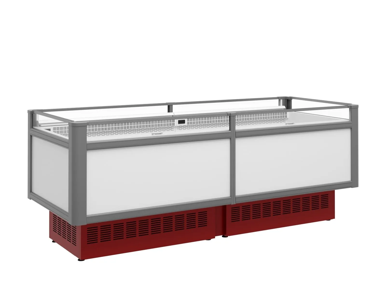 2545х1015х995, t режим -18 C.Бонета,со встроенным агрегатом, полезный объем выкладки— 0,4 м3,охлаждаемая площадь поддонов для выкладки продуктов 1,94 м2, динамическое охлаждение, оттайка ТЭН, потр. эл.энергии в сутки —44,6 кВт, , цвет корпуса —белый, щиток — красный, 14,4Вт, 220В.
