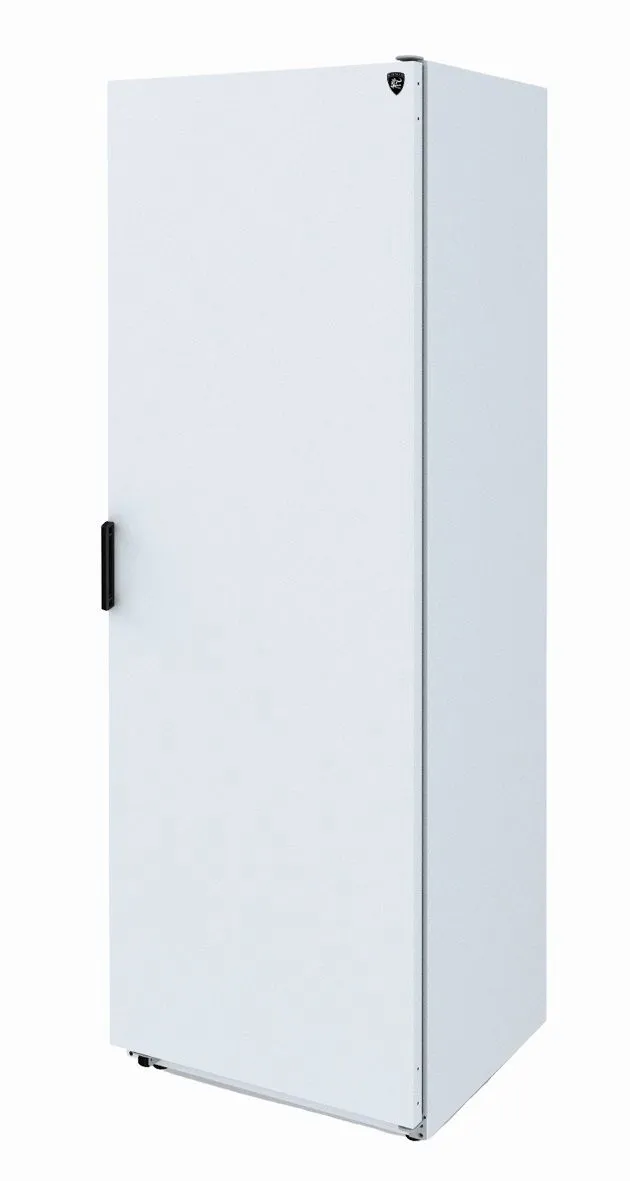 610х560х1795 мм.; 0…+7 С; глухая дверь; агрегат снизу; динамическое охлаждение; 220 В; 3,6 кВт, 390 литров. Внутреннее исполнение - окрашенный металл.