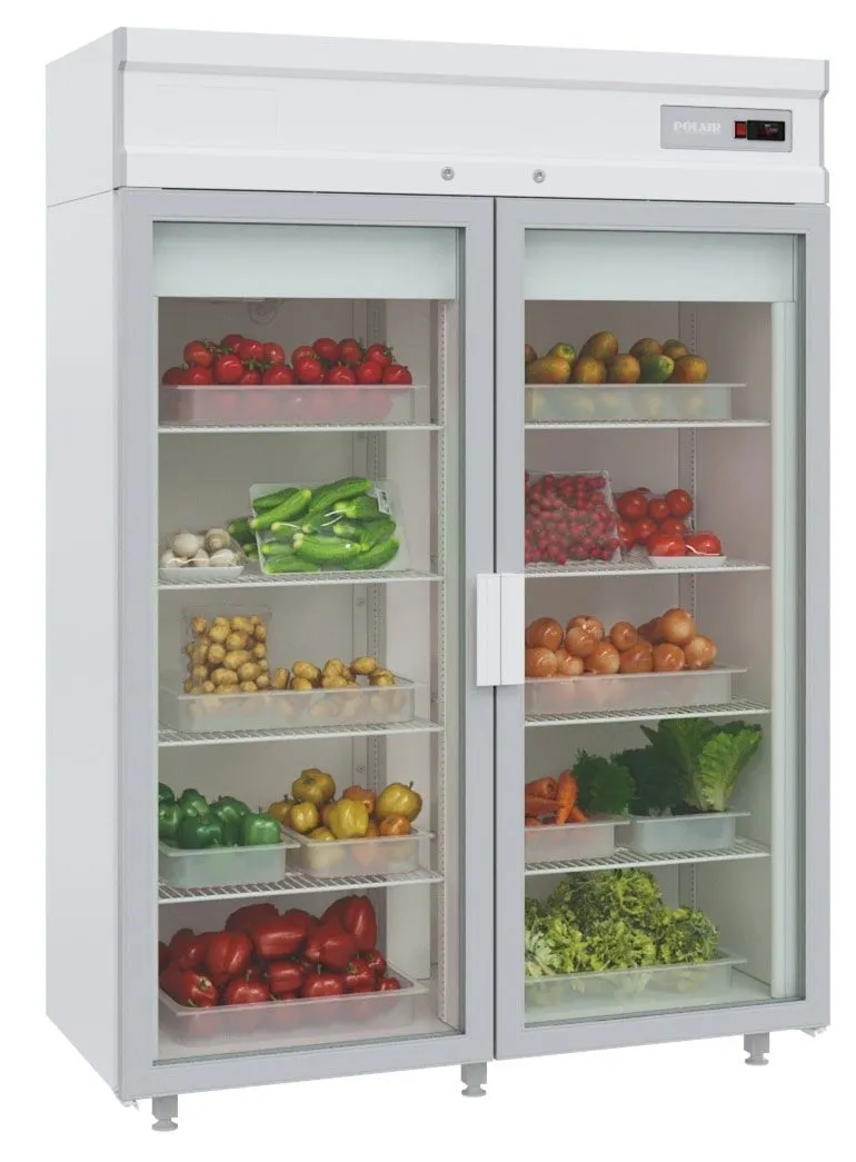 1402х710х1960мм, Хладагент R290 Диапазон рабочих температур, C +1…+10, Объем 1000л, Размер полки 595х455мм, Кол-во полок 8, 230В, 7 кВт/час за сутки
