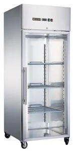 740х830х2010 мм, 230В, 0,215 кВт, 650 литров, +2...+8С, 1 стеклянная дверь, полки в комплекте 3хGN2/1, динамическое охлаждение, на колесах, нержавеющая сталь, замок, подсветка