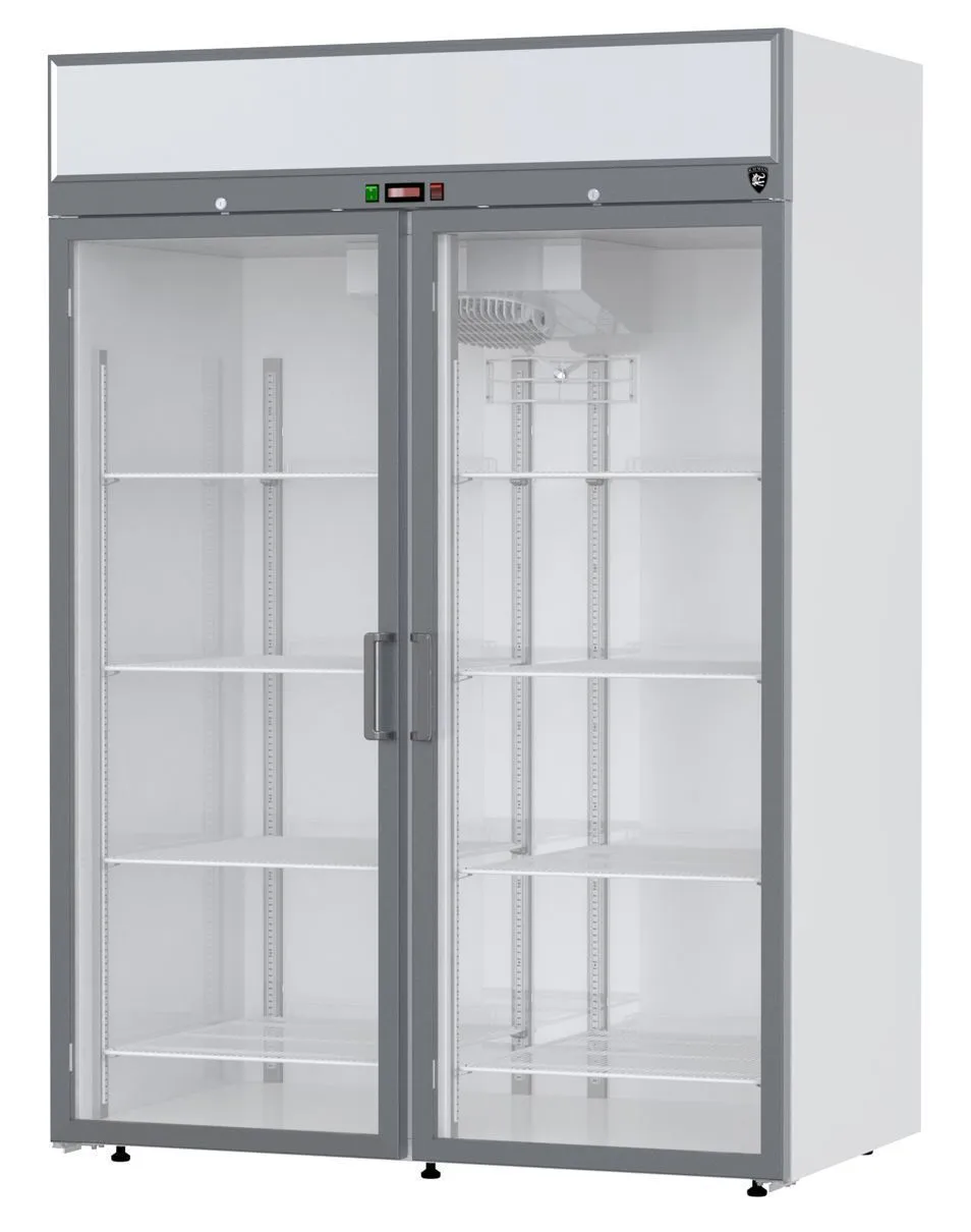 1400х660х2015мм,-5…+5С, 1000л, 2 двери стекло, крашеная сталь, R290, подсветка на фронтальной панели, клапан шредера, верхнее расположение агрегата, 230В, 50 Гц, тип охлаждения динамический, оттайка автоматическая при помощи ТЭНов, с системой испарения конденсата. Терморегулятор эл. блок. ПЭН обогрева трубки слива конденсата. Кол-во полок 10 , подсветка, замок. Суточный расход электроэнергии 8кВ/ч. Потребляемая мощность 0,71раб/0,418отт кВт. Стандарт Gastronorm GN 1/1+GN 2/4. Вес 180кг. Толщина стенки корпуса 40мм.