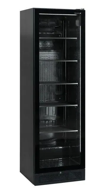 595х595х1990мм, 86кг, 347/387л, +2...+10С, 0,23кВт, 220В, стеклянная дверь без рамы, цвет черный, 5 полок,размер полок 492 x 405 mm, замок, ручка.