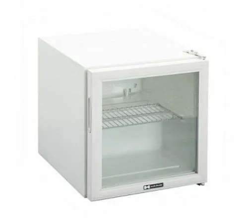 485x435x525, 220В, 0,08 кВт, 21 кг, 46л, размер камеры 420x494x360, температурный режим 0-10С, климатический класс 4, хладогент R600a, вспениватель C-P, уровень шума 39 dB, 1 LED лампа подсветки, 1 полка, механический термостат, плоская стеклянная дверь, 2 подстраиваемые ножки, 2 колесика, без замка.