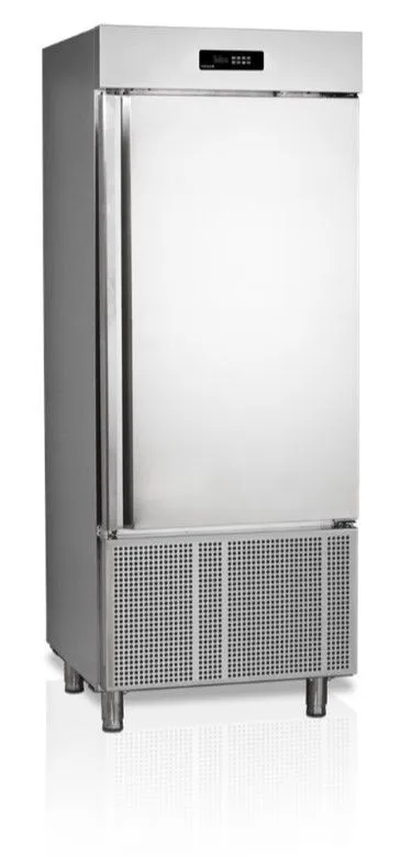 800 x 815 x 2170 мм, 2кВт, 220В, темп. шок. заморозки от +70 до -18 C до 38 кг/цикл, темп. шок. охлаждения от +70 до +3C до 55 кг/цикл , 319/299л, 205/210кг, R404A, 14 пар направляющих под гастроемкости GN1/1 и Euronorm, регулируемые ножки/опция колеса