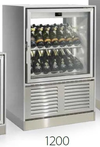 Код: GM2C1U - 837x623x1232, 220В, 0,3кВт, со встр. агрегатом R404a, t=+4/+18C, вент. охлаждение, 4 полки (до 68 бут.), объем 228л, цвет - стандартный