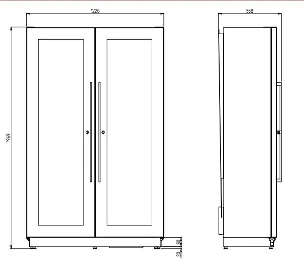 Код A1MIAMIBRP/873; 1220х500х1970мм, 220В, стат. охлаждение +4...+18С, 250кг, с встр.агр. R290, 86+86 бут, цвет серый 873, толки типа Т в комплекте