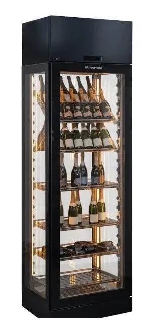 810x645x2190 мм, 018кВт, 220В, темп. +4...+18C, вент. холод, влажность 75%, вес нетто 193 кг, хладагент R290, объем 565л, LED подсветка температурой 1800К. Настраиваемые по высоте ножки. Цвет корпуса - черный. БЕЗ ПОЛОК