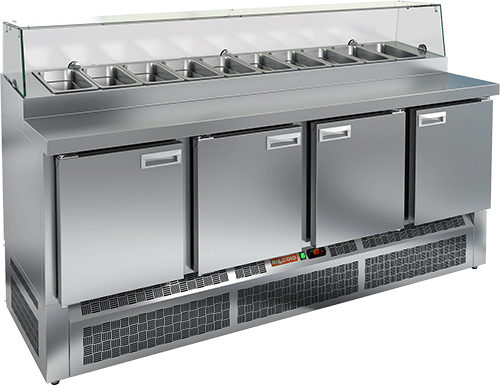 1970х700х850мм, агрегат снизу, +2/+10, 4 двери, охл.горка с крышк.10хGN1/3-150 (в компл.не входят), в компл.4 направл.+ 4реш.полки GN1/1