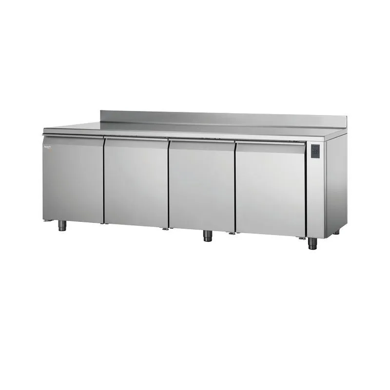 2050х600х950 мм, 175 кг, 0,97 кВт, 220 В, от -15 до -22c, энергосбережение, нерж сталь AISI 304, толщина изоляции 60 мм, со столешницей и бортом, 4 глухие двери, R452а, в комплекте: 4 полки 325х430 мм, 4 пары направляющих, без агрегата