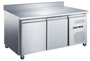 1360x700x950 мм, 230В, 0,215 кВт, 282 л, -2…+8 С, 2 двери, полки GN1/1, одна полка для каждой двери в комплекте, столешница из нержавеющей стали, с бортом борта, боковое расположение холодильного агрегата, динамическое охлаждение, на колесах