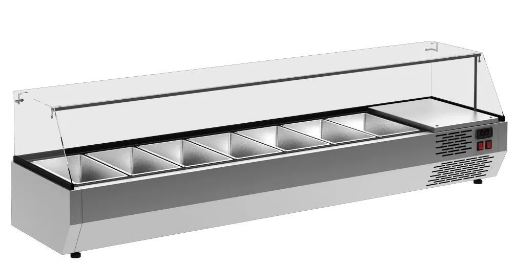 1200х400х420(455)мм, +2..+10 С 220 В; 3 кВт/сутки, гастроемкости в комплект не входят