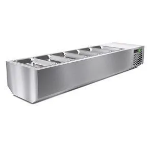 1835х385х265мм, Витрина охлаждаемая настольная открытая, изготовлена из нержавеющей стали марки AISI 430. Температурный режим +2…+7, вместимость: GN 1/3 - 7х150, плюс GN 1/2 - 1х150, мощность 100Вт. Компрессор (Китай). Хладон R-134. Поставляется в собранном виде.