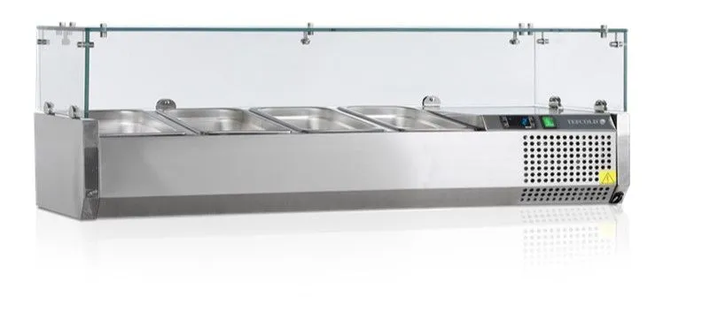 ЗАМЕНЕН НА 33595 GVC38-120; 1200 x 395 x 225 мм, 0,112 кВт, 220В, +2/+10С, 40л, вес нетто 40 кг, с встр. агр., R600A, вместительность - 4 GN1/3 (в комплект не входит). Стеклянный колпак