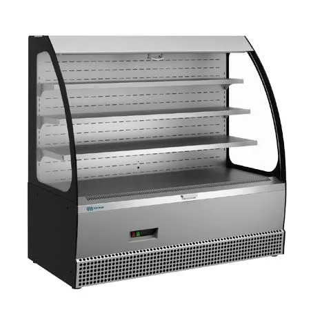 1305х780х1265 t режим +1…+10 C. Витрина холодильная,со встроенным агрегатом, 3 металлические полки, полезный объем —0,31 м3,охлаждаемая площадь поддонов для выкладки продуктов, 1,6 м2, динамическое охлаждение, оттайка естественными теплопритоками, потр. эл.энергии в сутки —12кВт, R290, цвет корпуса — черный