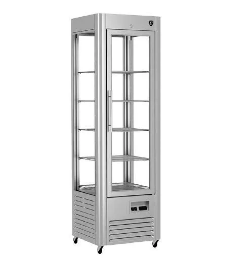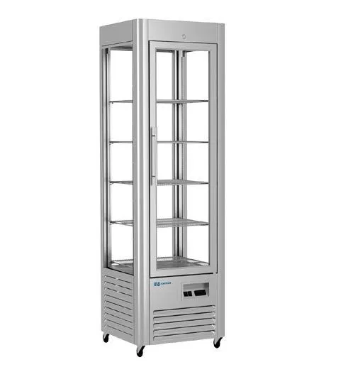 600x600x1930 t режим +2…+10 C. Витрина холодильная,со встроенным агрегатом, 5 решетчатых полок, полезный объем —0,22 м3,охлаждаемая площадь поддонов для выкладки продуктов, 1,1м2, динамическое охлаждение, оттайка естественными теплопритоками, потр. эл.энергии в сутки —6,2 кВт, R290, цвет корпуса — нержавейка