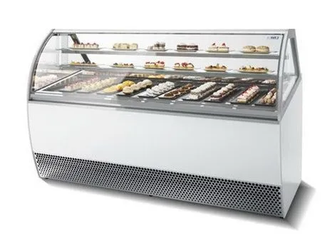 2155x1055x1360 мм, 0.85 кВт, 220 В, 260 кг. -1/+10 C. Цвет белый. Декоративные панели фронтальная и боковые RAL 9003. 2 полки глубиной 240 мм. Фронтальное стекло гнутое обогреваемое, открывается снизу вверх, 2 газлифта. Раздвижные дверцы со стороны продавца. Вентилируемое охлаждение, встроенный агрегат, R290. Климатический класс 3 (25 C / 60 %RH). Подсветка LED4000K