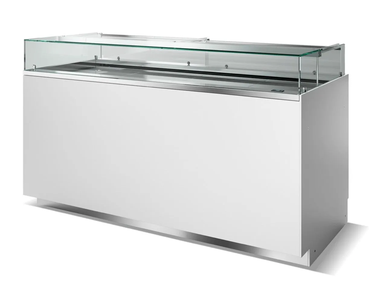 1500x819x1170 мм, 0,5 кВт, 220 В, 210 кг. Подсветка LED 5700 K,Условия работы 25 C / 60 %RH,Темпер. продукта +4/+8 C,Боковые и Фронт.панели Белый RAL 9003
