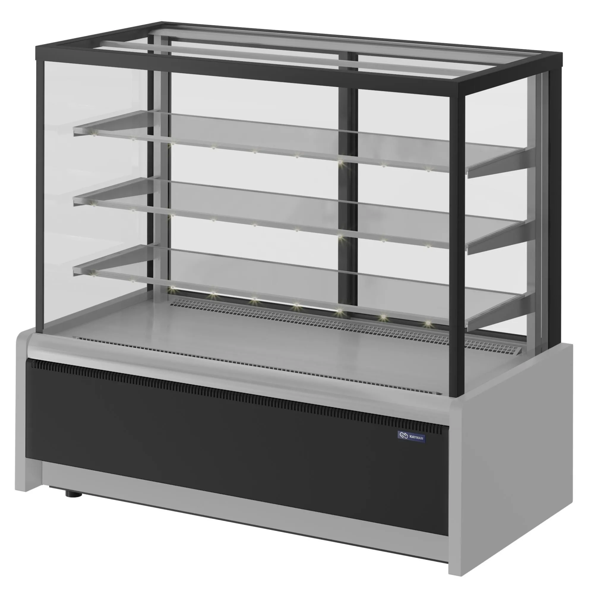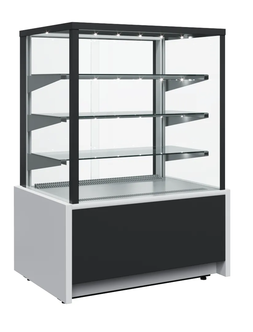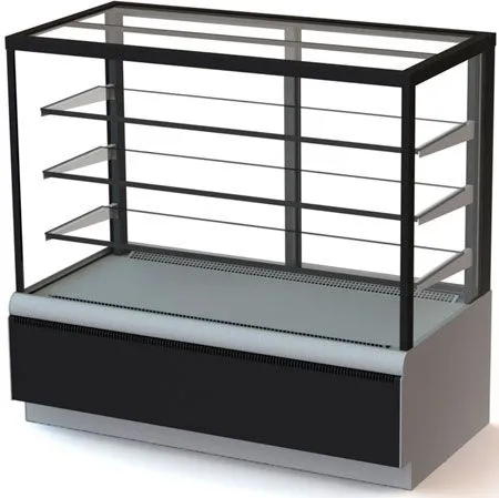 1370х650х1265, t режим +6+12 С. Витрина кондитерская, (+6…+12С), 3 стеклянные полки, подсветка LED тепло-белый свет, размер выкладки: 1310*440, вентилируемое охлаждение, раздвижные задние шторки, потр. эл.энергии 7,4кВтч/сутки, 115кг, цвет серый, черный, 220В, 0,74кВт65