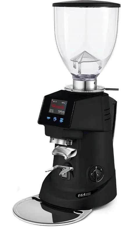 230x270х615, 220 V, 0,35 кВт, 13 кг, электронная кофемолка-дозатор, цвет черный, плоские жернова, скорость вращения 1350 об/мин. Объем бункера 1500гр. Диаметр жерновов 64мм, металл, сенсорный дисплей; с автоматическим вентилятором охлаждения двигателя, вентилятор включается электроникой; производительность 7 г/2 с; рекомендованная производительность в день 2 - 3 кг
