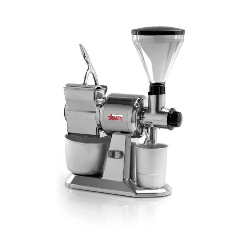 250х650х640мм, 380/50/3 1hp, 230-400/50Hz, объем резервуара 3 л x 2, диаметр жерновов 107мм. Подходит также для помола кофе, специй, сухарей до 50 кг/ч