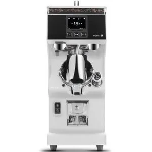 195x396x479 мм, Вместимость бункера - 1,5кг. Производительность - 15кг/ч. Диаметр жернова - 75мм, скорость помола - 2,7-3,5с. Возможность программирования до 3 порций и установки температуры непосредственно на экране кофемолки, диаметр жерновов 75 мм; Корпус: нержавеющая сталь, цвет белый; Производительность, кг/день: 10 кг
