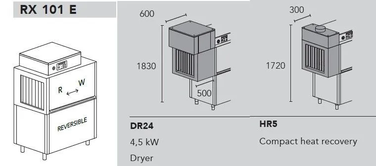 1980*715*1830/1900мм, 380В, 32.6кВт, 5 скоростей 66-100 кас/ч, до 1800 тар/ч, DR24 - сушка 4,5 кВт; HR5 - теплорекуператор - для подключения к холодной воде (потреб. энергии, t и влажн. воздуха в помещен. ниже, чем при доп. мощности); DDE - дозатор моющих и ополас. средств, корзины в комплекте: С40 для тарелок, C44 для бокалов, С43 для GN1/1, C47 для приборов; Так же, включена опция: разделение на 2 части для удобства транспортировки и заноса в помещение. SX - движение СЛЕВА-НАПРАВО,