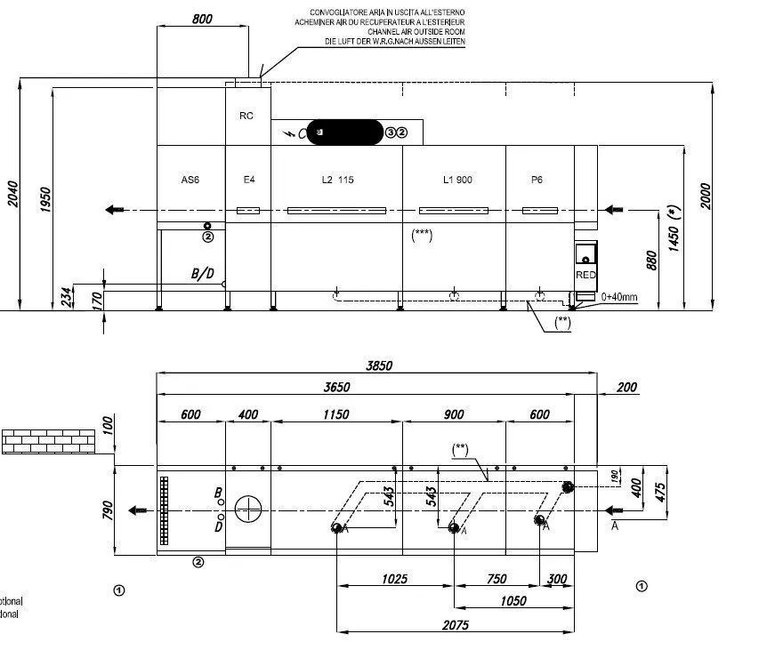 3850x790x1950 мм (2040 мм высота в районе рекуператора), 380В, 50кВт, направление СПРАВА-НАЛЕВО, производительность 167-255 кас/час, NEXT версия с панелью управления TECH+ и EOR системой (возможность ограничивать настройки для неквалифицированного персонала и экстренное отключение машины с панели управления). COLD WATER (CWV) - доп. мощность для подключ. холодной воды, RC -теплорекуператор, AS6- сушка 600мм=6,42кВт, RCD - атмосферный бойлер и нагнетающая помпа, которые гарантируют постоянный напор воды и температуру ополаскивания, RED - система удаления грязи из воды, которая идет в модуль предмойки, CENTRAL DRAIN- централизованный слив, RAH - система предварительного смешивания средства для ополаскивания с водой (экономит до 70% ополаскивающей химии), разделение на 2 части для удобства транспортировки и заноса в помещение. БЕЗ ДОЗАТОРОВ МОЮЩЕГО И ОПЛАСК. СРЕДСТВ