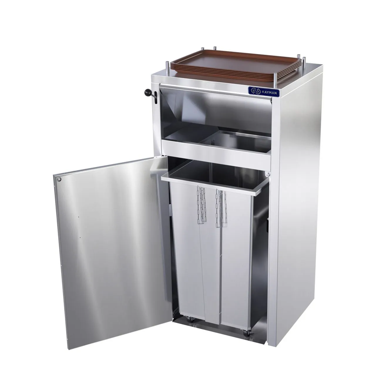 600х600х1250мм, габаритные размеры емкости для мусора 450х550х755мм, объем емкости для мусора 124л. Размер рекомендуемого мешка для мусора не менее 100*115см. Механизм открывания заслонки-ручной. В комплект входит 20 мусорных мешков.Масса тумбы 46,5кг, масса емкости для мусора 12,5кг.