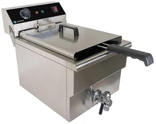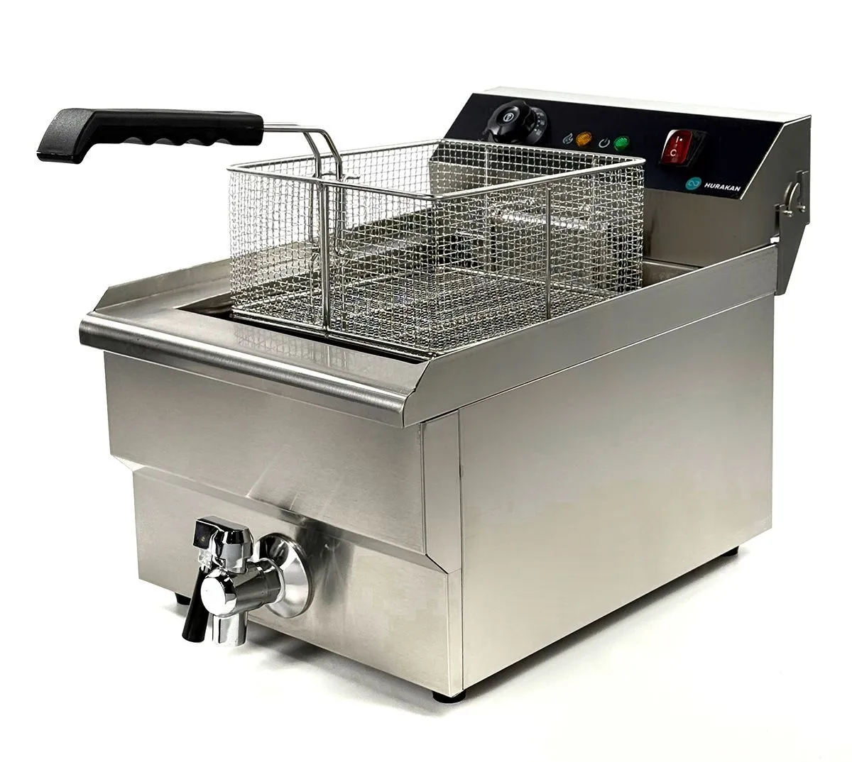 340x540x450мм, 220В, 5кВт, 9,2 кг, одна ванна ёмкостью 16 л, с крышкой, 1 фритюрная корзина, температурный режим 60-200С, идет без вилки