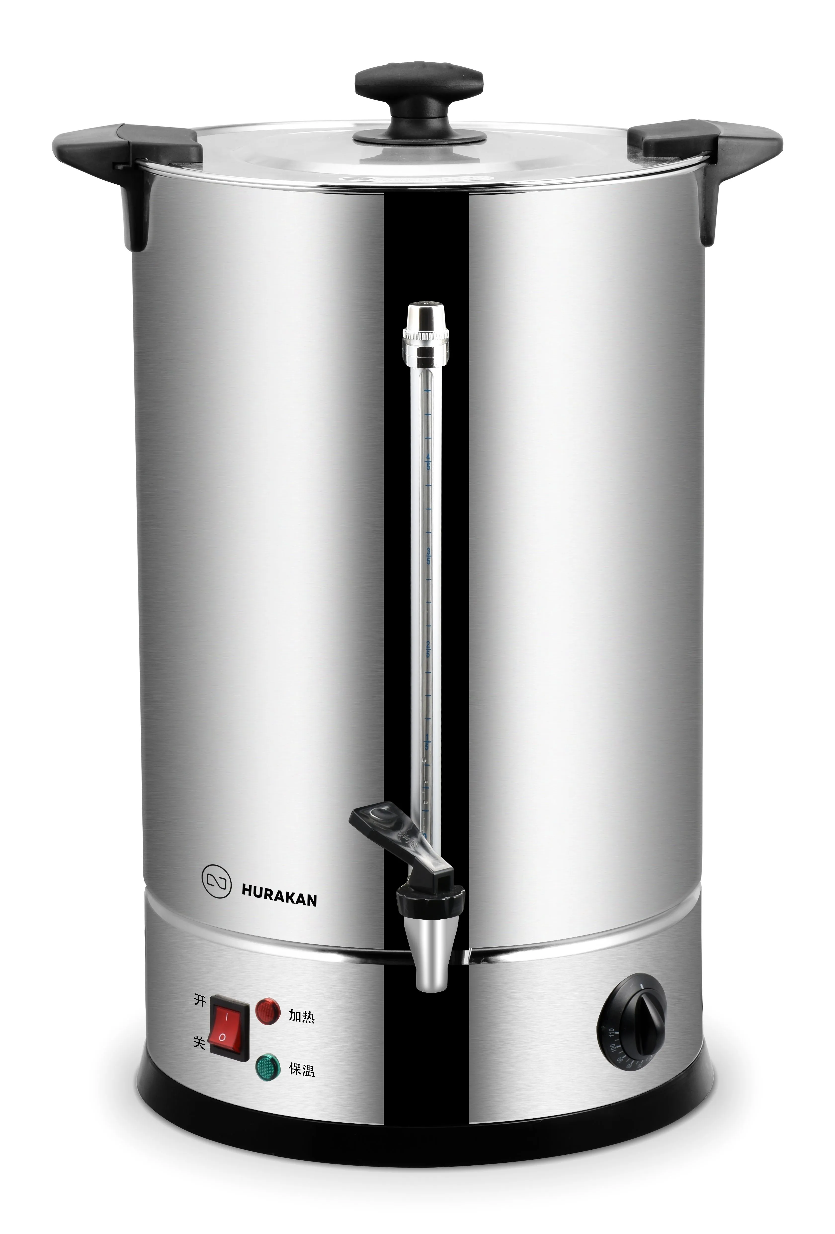 265*265*440мм, 1,8кВт, 220В, 3,1 кг, 9.2л (до отметки MAX), (габариты с ручками и краном 340х335х440мм), материал корпуса: нержавеющая сталь, пластиковый кран, двойные стенки, тип подачи воды: заливной, контроль уровня и температуры воды, индикаторы нагрева, закрытый тен