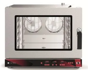 Конструкция модели выполнена из нержавеющей стали, что обеспечивает долговечность эксплуатации и соответствие строгим санитарным нормам. Двойная дверь из закаленного стекла с системой упрощенной очистки способствует минимизации теплопотерь и повышает безопасность работы персонала. Реверсивные моторы вентиляторов с двухскоростным режимом и оптимизированная геометрия камеры гарантируют равномерность приготовления продуктов.