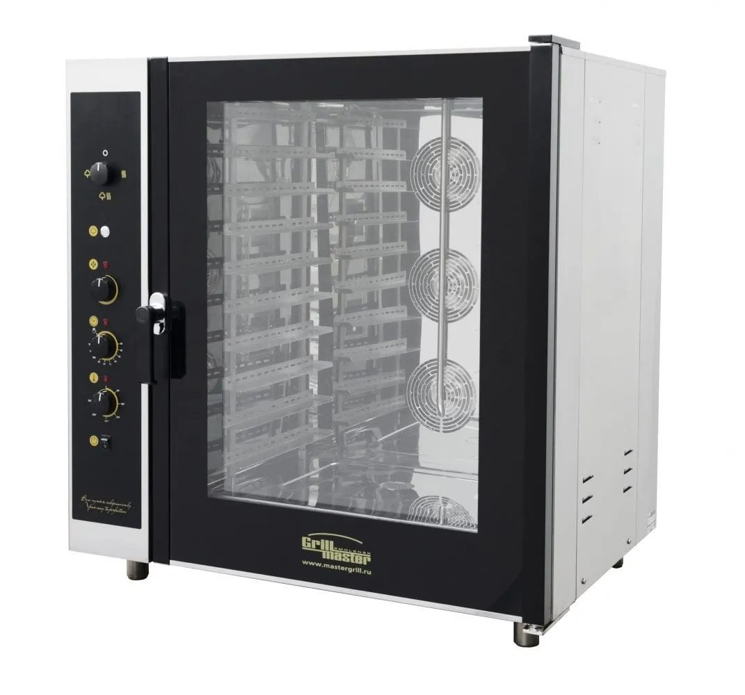 1076х867х1113мм, 10 уровней под гастроемкости GN 1/1 325х530 мм или пекарский лист 600х400 мм, шаг уровней 80 мм, электромеханическое управление,4 режима работы, 3 мощных вентилятора с реверсом, автоматическое поддержание температуры в пределах 50-300С, система автоматического и ручного пароувлажнения, двойная система парообразования (парогенератор+инжекционный впрыск), дверь пароконвектомата из двойного термостойкого стекла, открывающееся внутреннее стекло, подсветка камеры, душ, 16 кВт в режиме конвекция и пароконвекция, 6 кВт в режиме чистого пара, полностью из нерж/стали, г.нетто 1076х867х1113мм, 220кг; г.брутто:1160х1000х1330 мм, 257кг