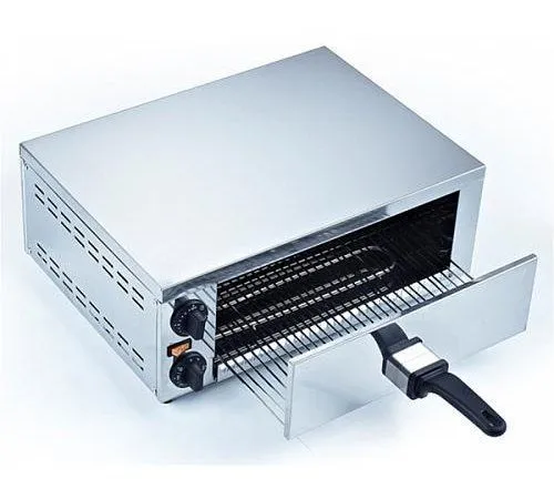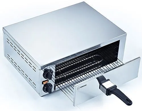 485х355х195мм, 1,13кВт, 220В, 8,2 кг, температура: 60-300 C, 1 камера, таймер со звуковым сигналом, поддон для крошек, размер выдвижных решеток: 360*340мм, максимальный размер пиццы 30см, корпус из нерж. стали, съемная ручка, подстраиваемые ножки