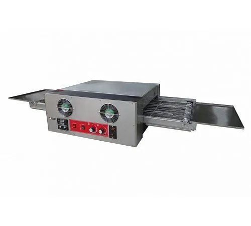 1560x750x360мм, камера 750x530x80 мм, ширина ленты 510мм, 10,3кВт, 380В, 96 кг, температура: 50-300 C, конвейер, 1 пицца за 3 минуты, рекомендуемая температура выпекания 210C, высота загрузки 70мм
