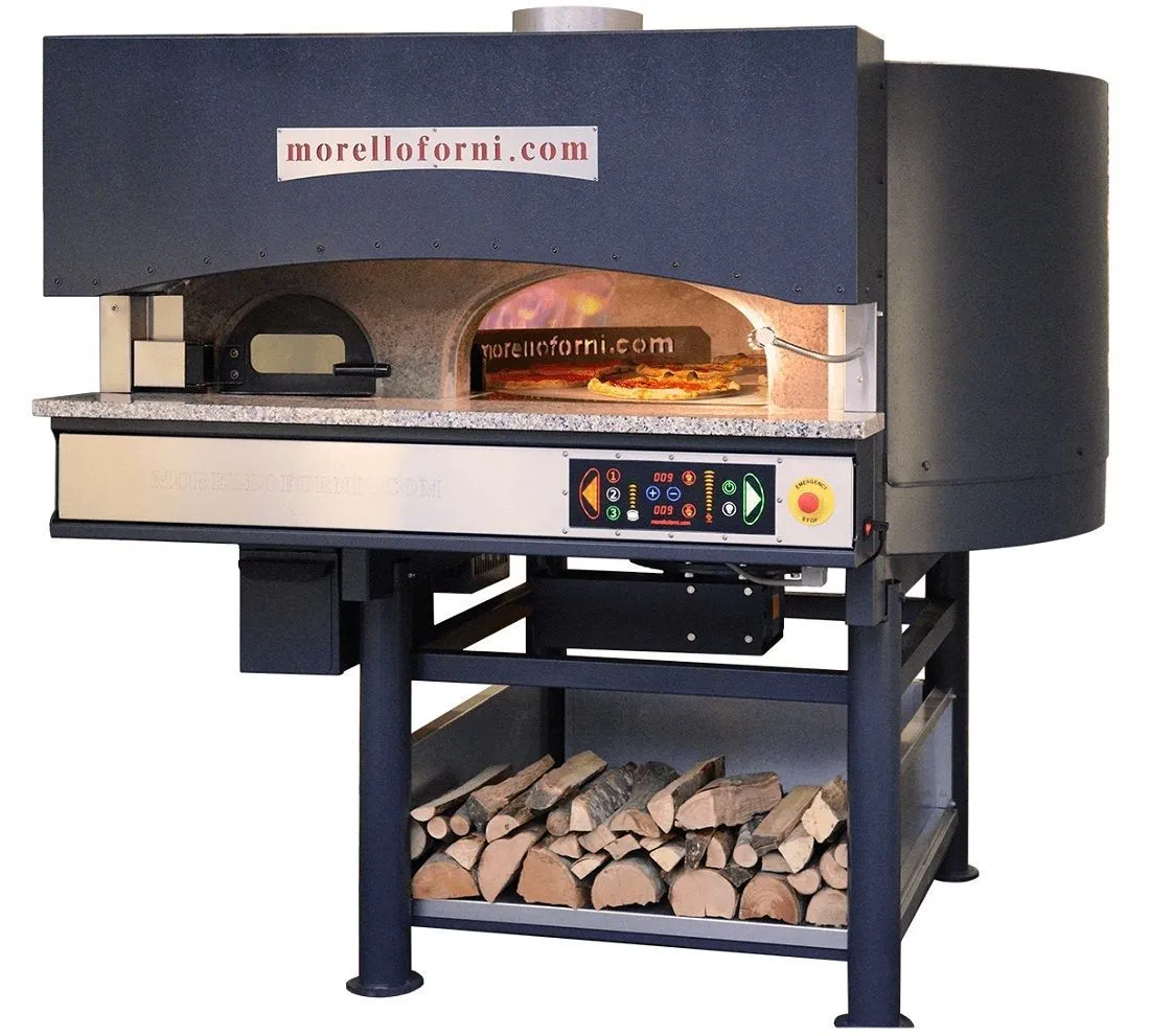 2200х2100х1940мм, 230В, вместимость 14 пицц d=30см, производительность 240 пицц в час, дровяная печь, с вспомогательной газовой системой обогрева и вращающейся платформой
