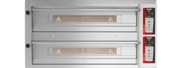 1420x1380x780мм, 380В, 11,2+11,2кВт, размер камеры 1050x1050x160мм, 2 камеры = по 9 пицц d=33см, электромеханическая панель управления