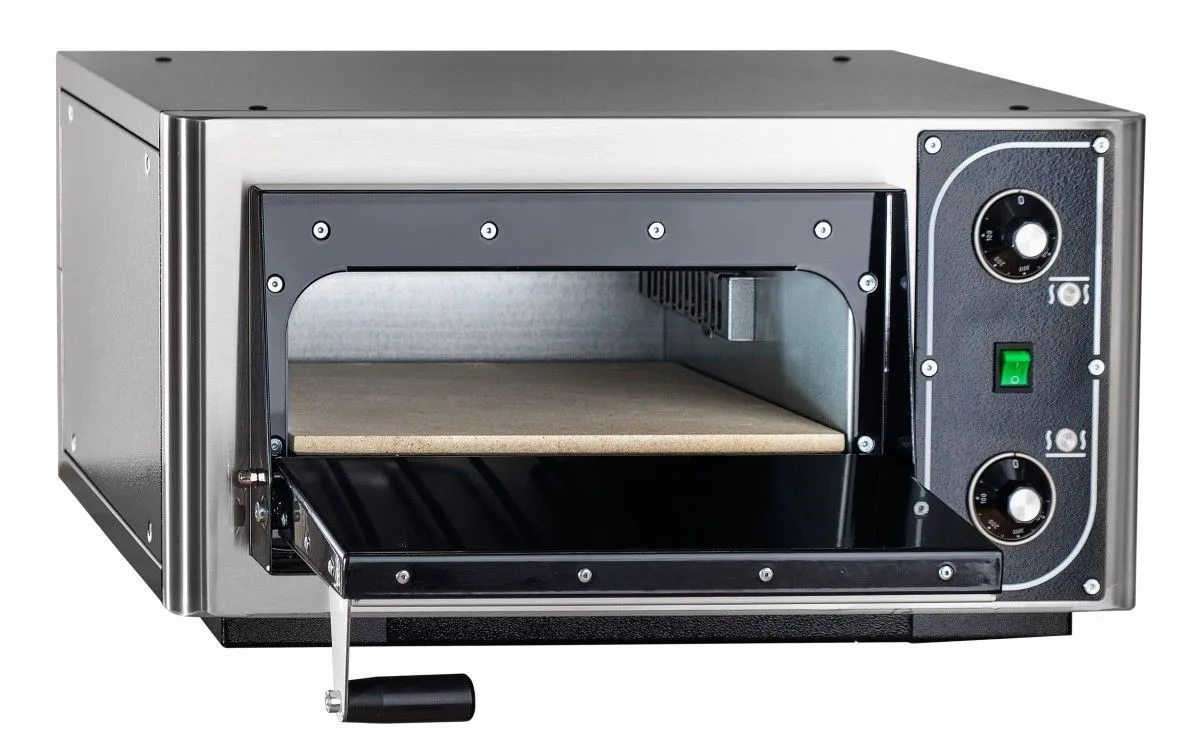Печь электрическая для пиццы ПЭП-1-01, 1 камера, глухая дверца, внутренние размеры камеры 370x401x147(125) мм, вместимость 1 пицца d 350 мм, +20...+450 С, очистка - пиролиз, 654(670)х567(615)х311(336) мм, 2,6 кВт, 230В