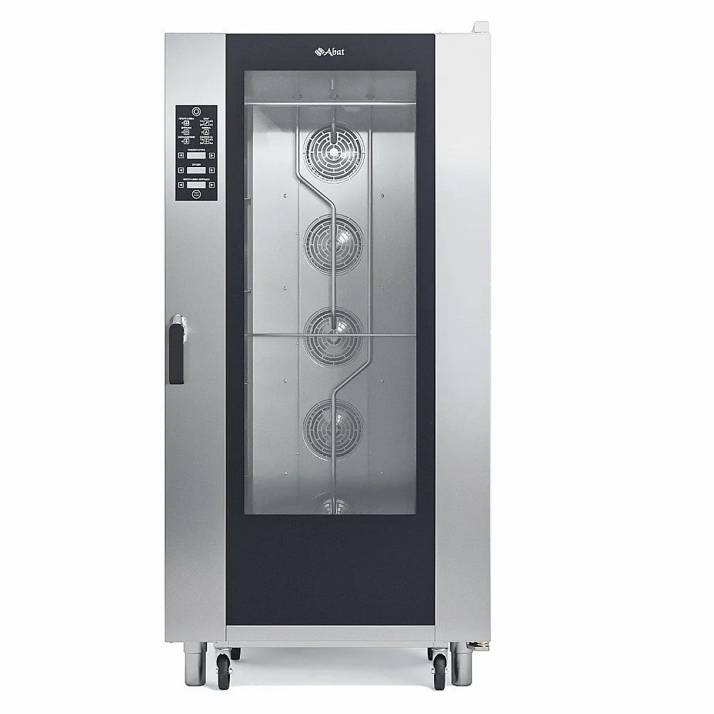885х1080х1825мм, Конвекционная печь КЭП-16П-01, подкатная тележка на 16 уровней 400х600 мм, нерж. камера, пароувлажнение - инжекция, 4 скорости вращения вентиляторов, память на 110 программ, до 4-ех этапов в программе, автоматическая мойка, без противней, корпус нерж.