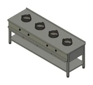 2350х700х800мм, Газовая напольная Вок-станция из нержавеющей стали со сплошной герметичной столешницей. Имеет 4 мощные бородавочные горелки. Газконтроль, запальная горелка, пьезоподжиг, кольцевая ВОК-насадка, работа на природном или сжиженном газе, 4х14,9кВт, Расход газа: прир (сжиж)-6,05 (4,71)м3?ч (кг/ч), Брутто: 245кг
