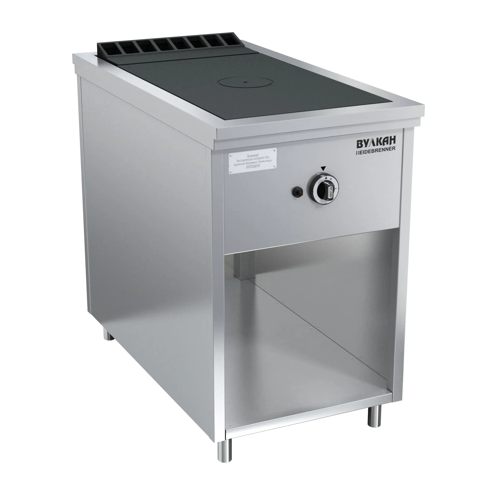 522х990х850мм, Плита из нержавеющей стали с чугунной варочной поверхностью, под которой располагается мощная горелка, быстро и равномерно нагревающая всю поверхность рабочей зоны, благодаря чему на ней можно разместить как крупные гастроемкости до 50 л, так и множество мелких. В нижней части плиты имеется ниша для хранения кухонного инвентаря. Газконтроль, запальные горелки, пьезоподжиг каждой горелки, работа на природном или сжиженном газе. Ножки плиты регулируются по высоте, 1х10,0кВт. Расход газа: прир (сжиж)-1,04 (0,81)м3?ч (кг/ч) Брутто: 116кг