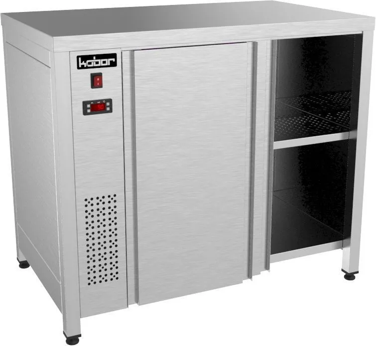 1500х600х870мм, Стол тепловой без борта, двери-купе, корпус н.с. AISI 430, перф. полка регулируемая по высоте, регулируемые по высоте ножки, электронная регулировка температуры до 60С, объем 462л, 220В, 2кВт, 105кг