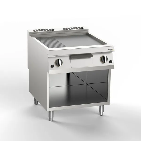 800х900х900 мм, 155 кг, газ 14 кВт, 1/3 рифленая, 2/3 гладкая, на открытой подставке нержавеющая сталь 430